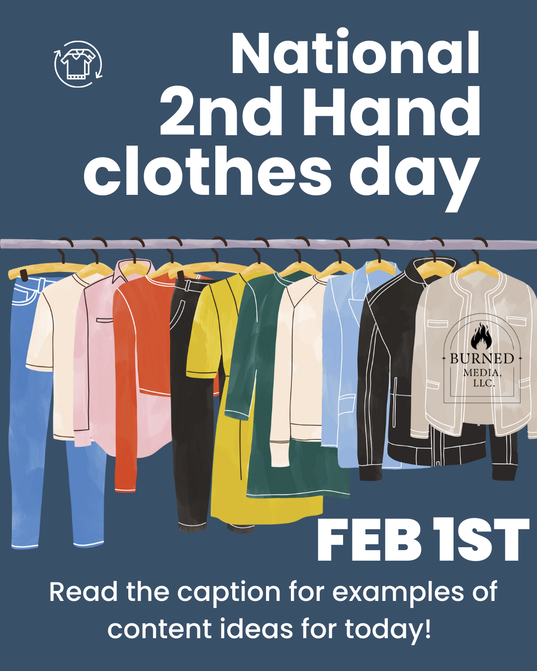 Secondhand Clothing Day isn’t just for thrift stores or resale shops. Almost any business or nonprofit can participate by tying the theme of reuse, sustainability, or community into their content. Even if clothing isn’t part of what you sell, the message behind the day—reuse, intention, and reducing waste—can easily connect back to your brand values.